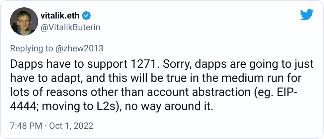 Since this is crucial for account abstraction, we want to encourage more dApps to integrate EIP-1271.